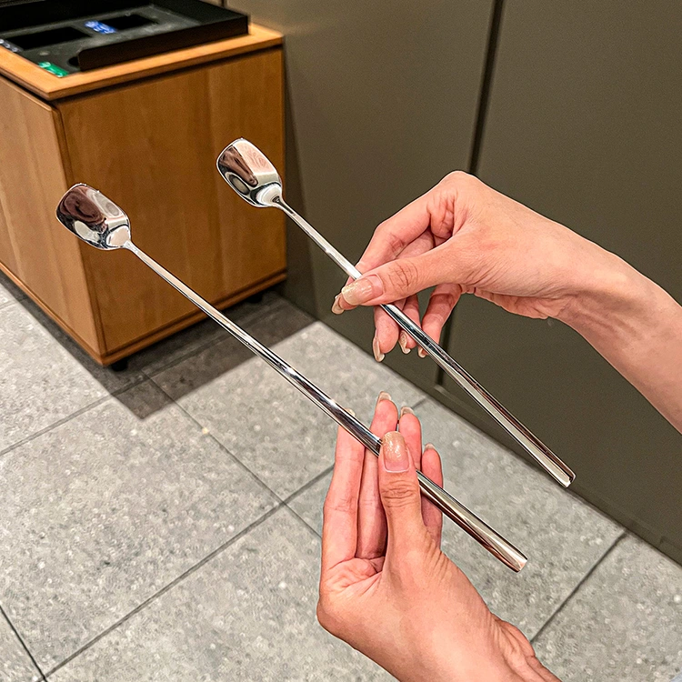 Kvadrat başlı paslanmayan poladdan qarışdırma qaşığı